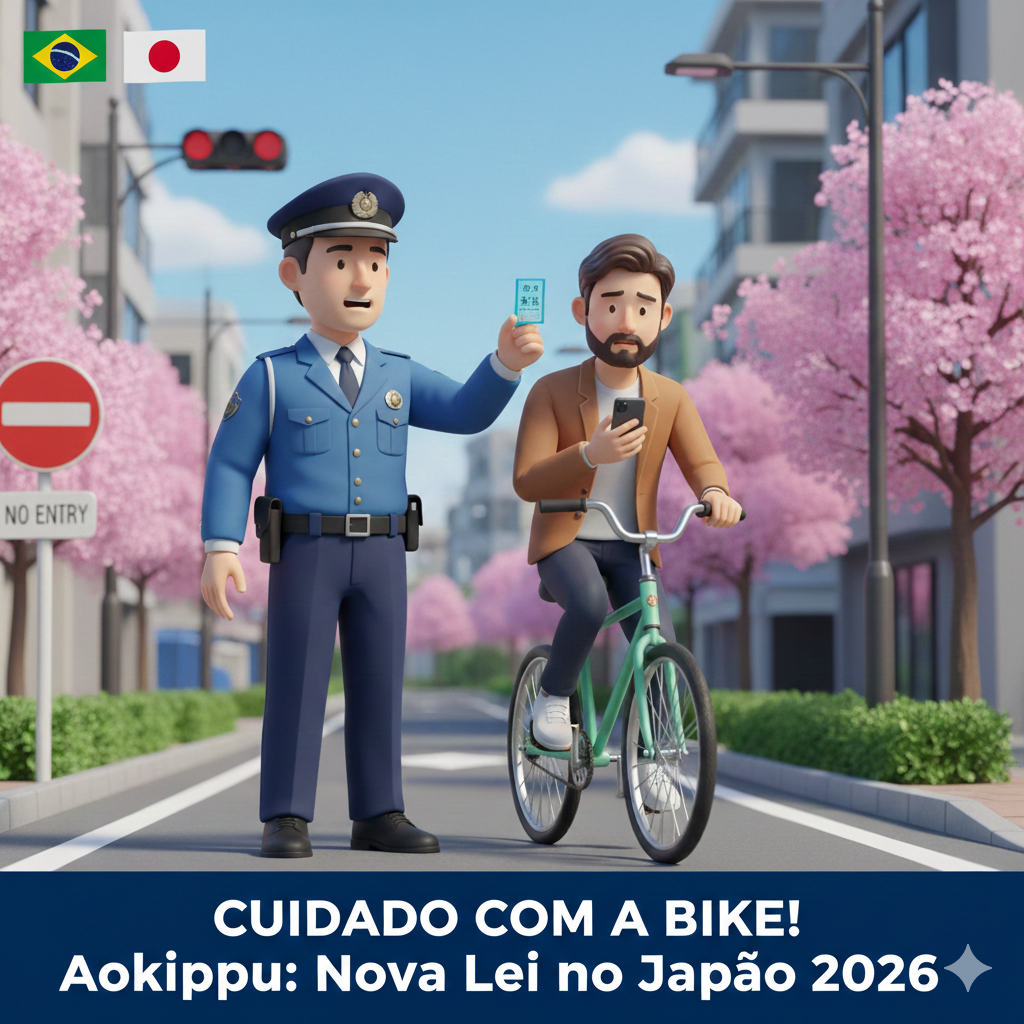 Cuidado com a Bicicleta! 🚲 Novas regras e multas (Aokippu) no Japão em 2026